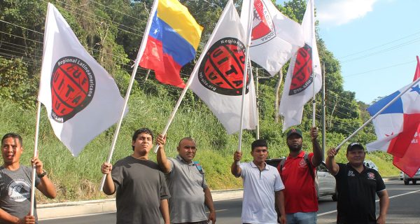 Ayer la Federación Unitaria de la Clase Trabajadora e integrantes de la Regional Latinoamericana de la UITA organizaron una nutrida manifestación ante la embajada de Estados Unidos en Ciudad de Panamá, ante las acciones bélicas al mando del imperialismo de Trump y su pretensión de apoderarse de la mayor reserva de petróleo mundial.