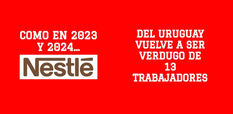 A Nestlé no Uruguai demitiu 13 trabalhadores do Centro de Distribuição, o qual, a partir de outubro, passou a operar com pessoal terceirizado, com as consequentes repercussões: precarização do trabalho, salários mais baixos e menos benefícios.