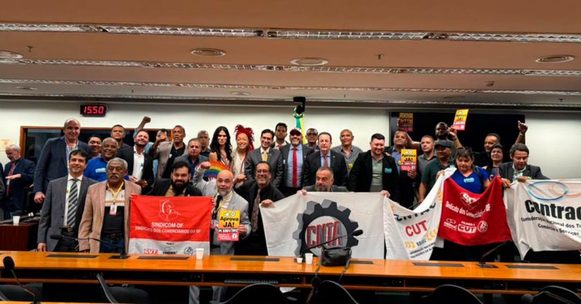 Trabalhadores comemoram aprovação do PL 3.361/2012 na Comissão de Trabalho da Câmara.