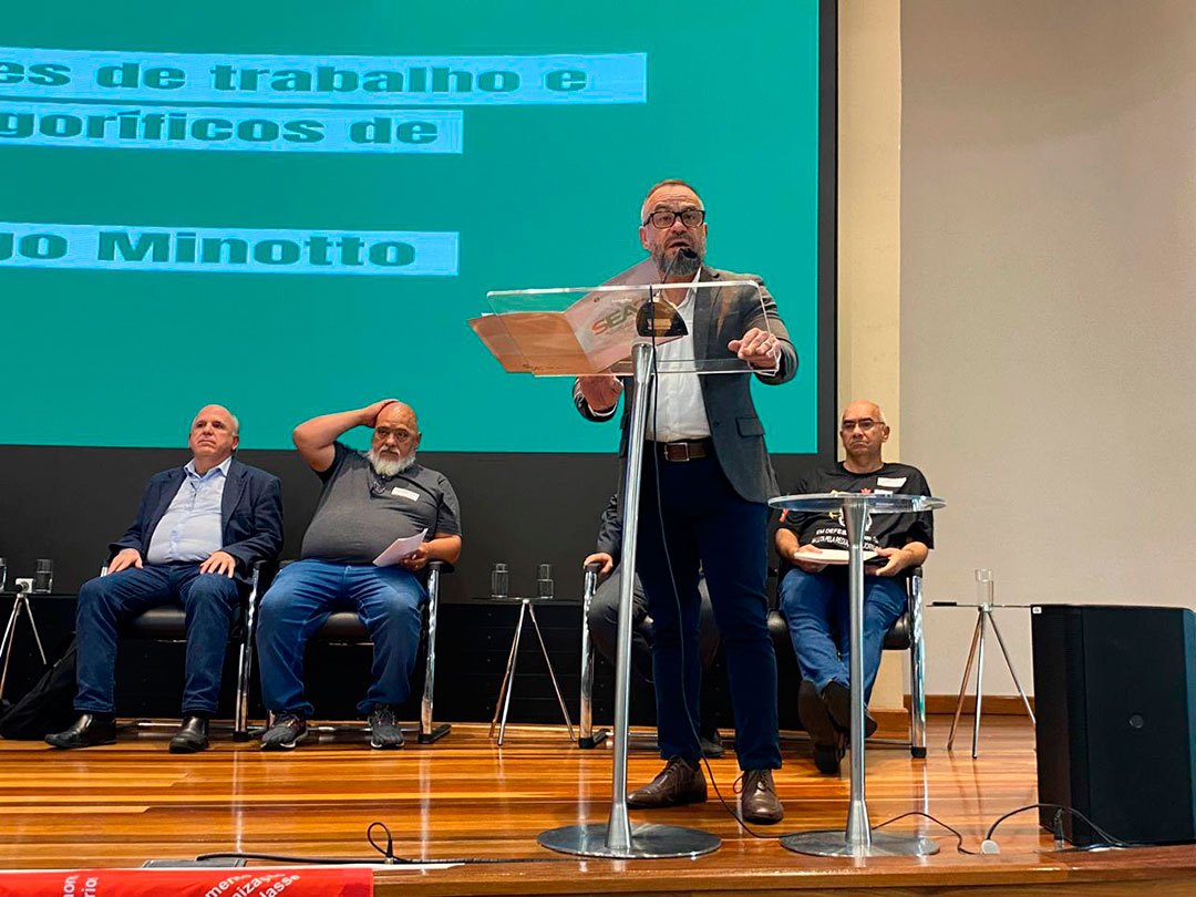Por sua vez, Sandro Eduardo Sardá, procurador e Coordenador do Projeto Frigoríficos do Ministério Público do Trabalho (MPT), enfatizou que a indústria frigorífica se caracteriza pela persistência de ritmos intensos, frio, ruído elevado, agentes biológicos, somado à suspensão do pagamento do adicional de insalubridade, contínuos vazamentos de gás amônia, longas jornadas, baixos salários, trabalho aos sábados e uma notória subnotificação de acidentes e doenças”.
