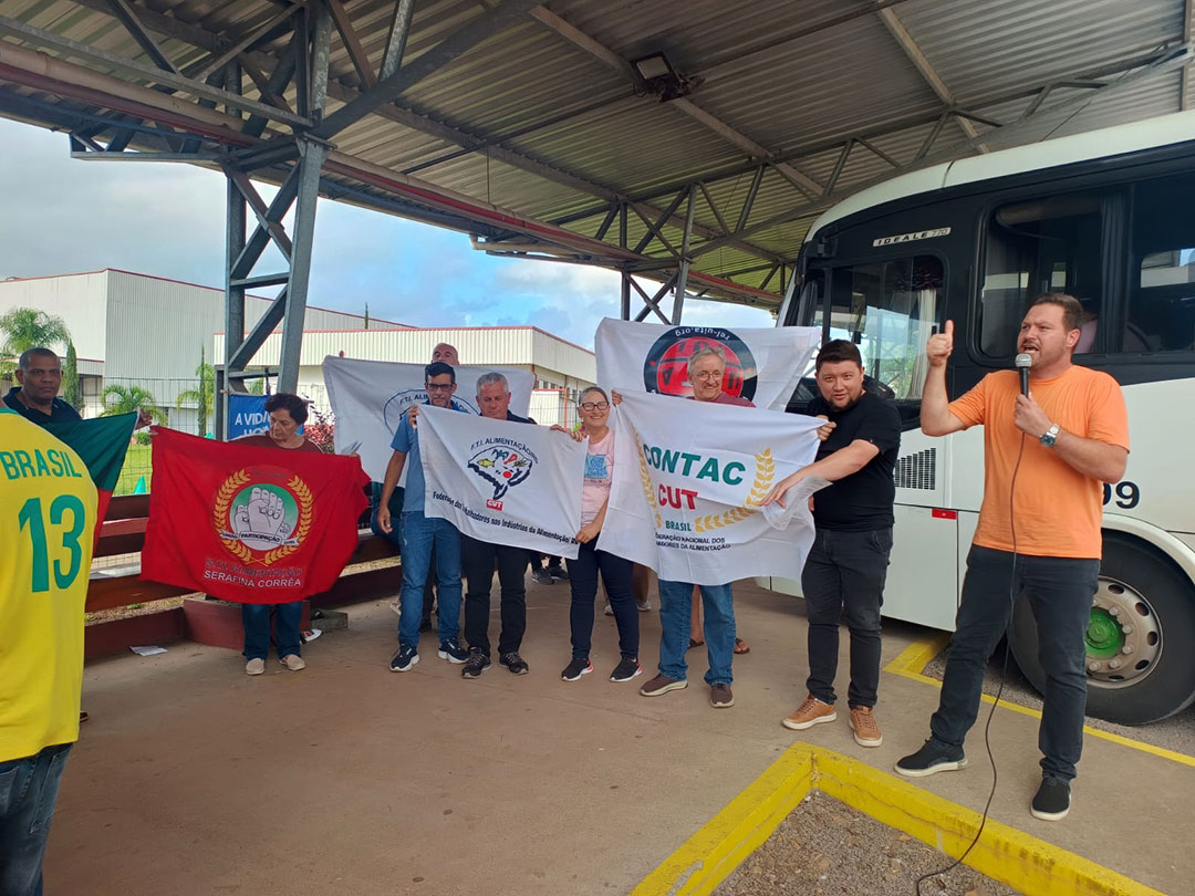 A FTIA RS, junto com sindicatos filiados, CONTAC e Rel UITA, esteve presente, reforçando que essa luta é de todos nós. Só com união, diálogo e mobilização vamos avançar nas conquistas.