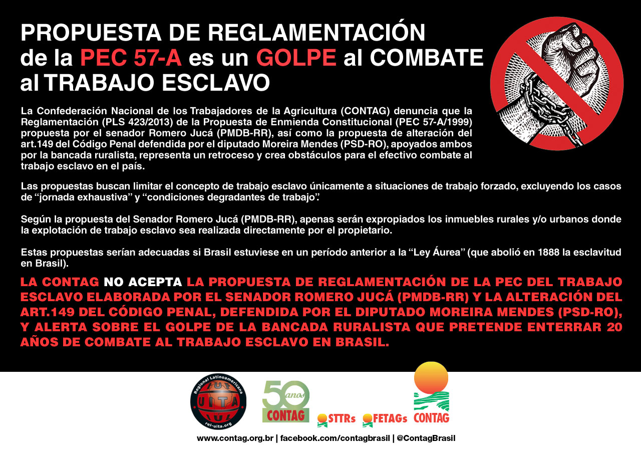 Campaña Internacional Contra la reglamentación del la PEC del Trabajo Esclavo