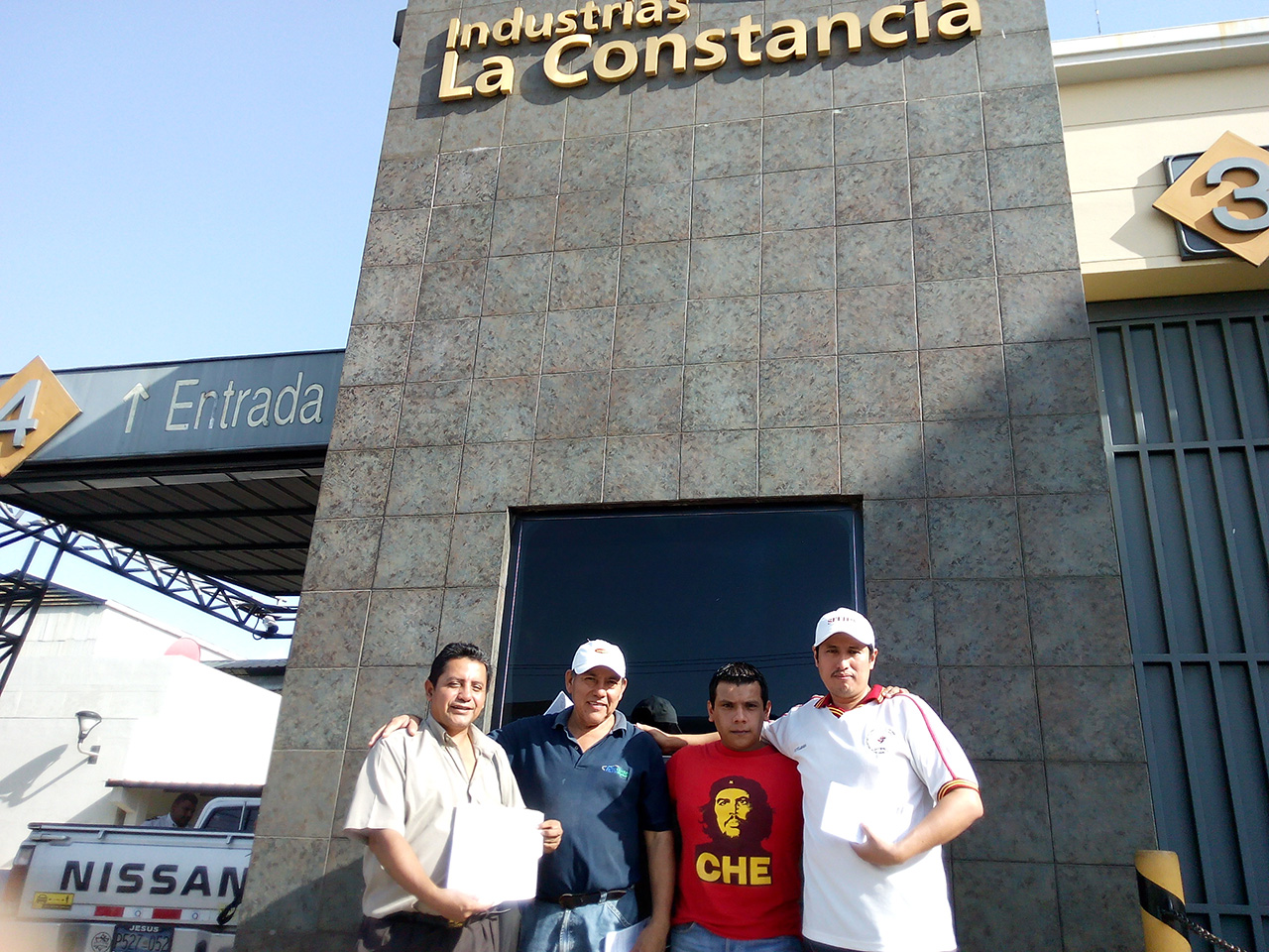 FESTSSABHRA y CEAL entregaron una carta de solidaridad con los trabajadores en huelga en Panamá y repartieron 100 volantes a los trabajadores que iban saliendo de la Cervecería La Constancia propiedad de SABMiller en San Salvador.