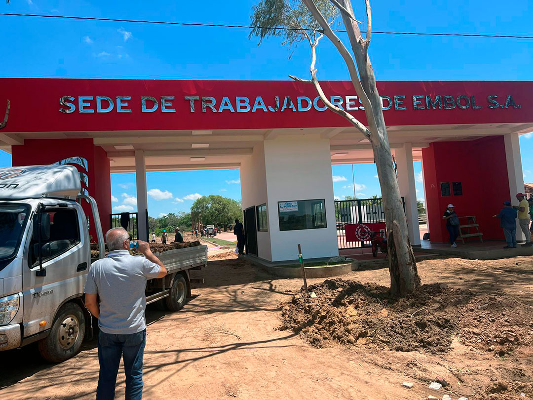 El secretario general del Sindicato tuvo un viernes extenuante. Participó primero en la reunión de la Intersindical de Trabajadores de EMBOL y luego se mantuvo en el predio donde al día siguiente se inauguraría la primera etapa del centro de recreación de nuestra afiliada.