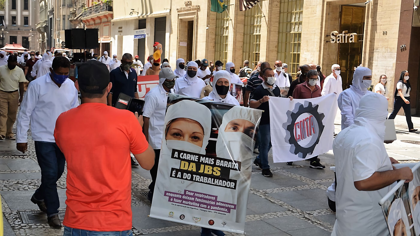 La idea inicial, dijo, era manifestar frente a la sede de la empresa JBS en Brasilia porque, aunque el problema sanitario de expansión del Covid-19 se da en toda la industria, esta transnacional es la única que tiene una actitud absolutamente intransigente para negociar la aplicación de protocolos efectivos.