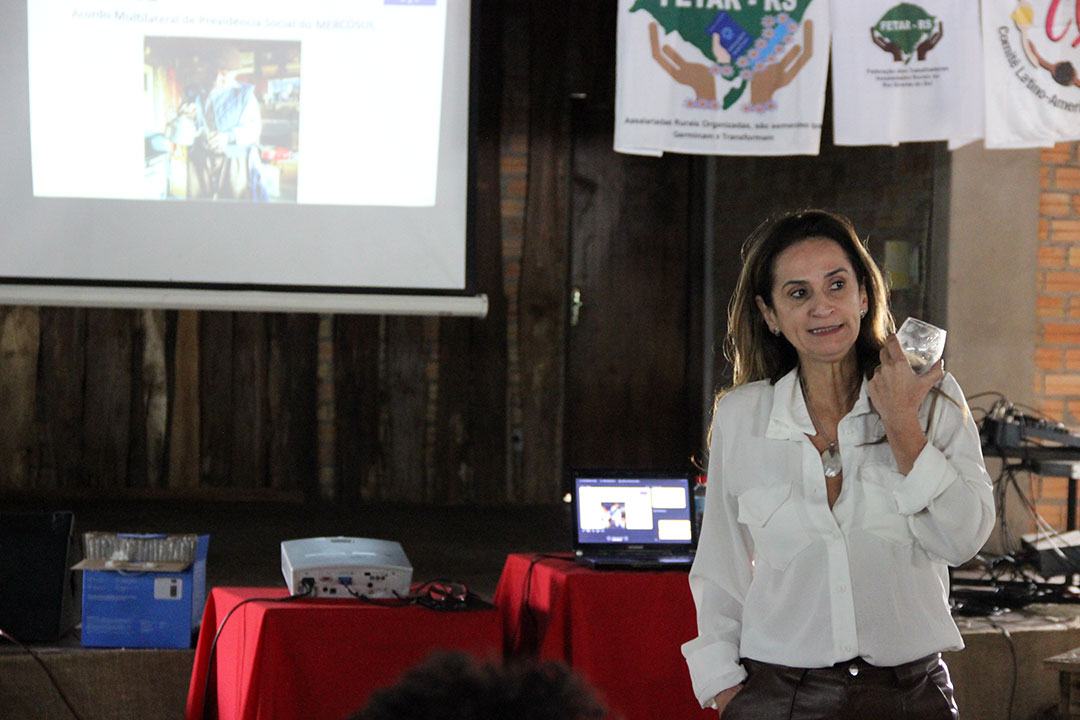 “Este no es el primer encuentro de mujeres asalariadas rurales en nuestro estado, y sin dudas no será el último porque hay mucho por hacer en términos de equidad y dignidad en el trabajo en el medio rural donde lo que allí sucede allí se queda y donde todavía hay temor a la hora de organizarse”, enfatizó Maria Felicia da Luz Castro, presidenta del Sindicato de Trabajadores Rurales de Sant’Ana do Livramento.