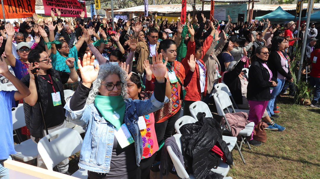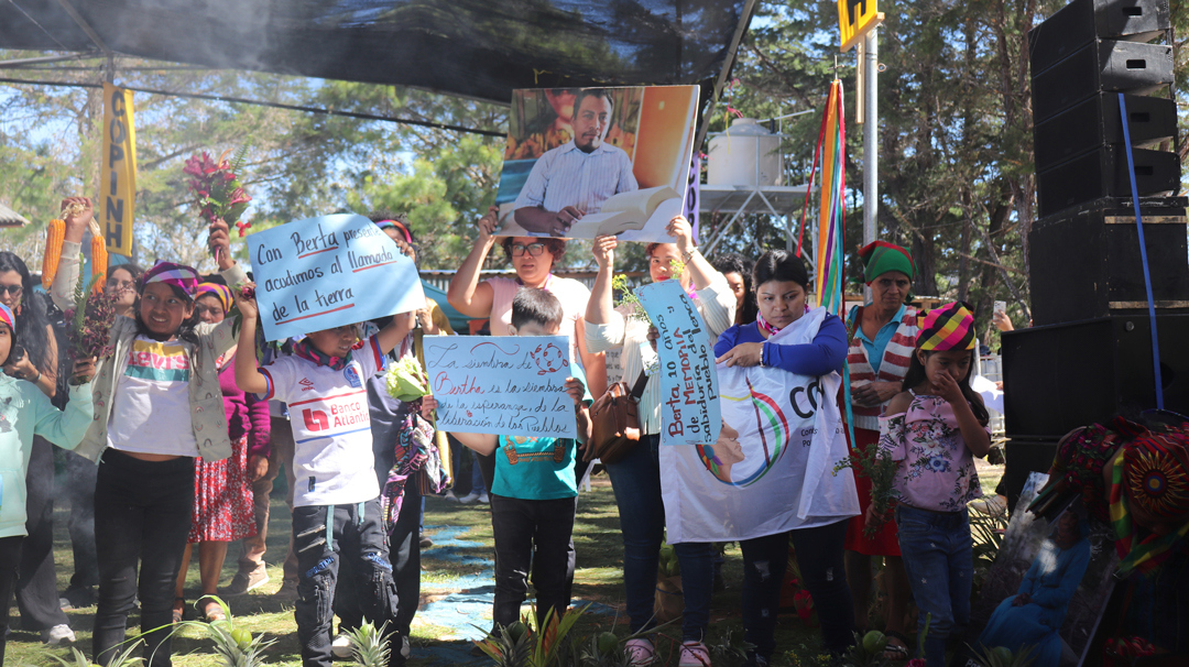 “Sabemos que el poder convocante de la palabra de Berta sigue y seguirá viviendo y que la lucha de los pueblos y las mujeres seguirán multiplicándose. La esperanza siempre se impondrá ante la muerte”, concluyó.