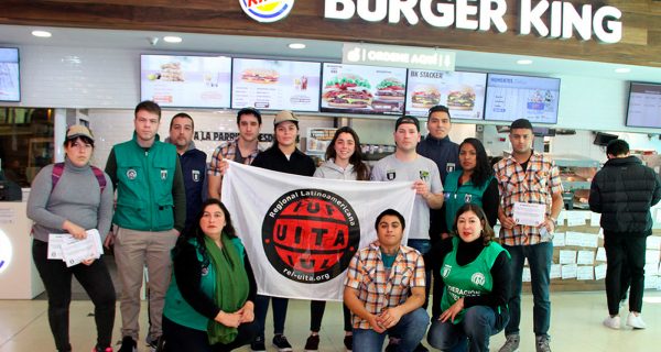 Nuestra afiliada el Sindicato Trabajadores Pasteleros, Servicios Rápidos, Confiteros, Pizzeros, Heladeros y Alfajoreros (STPSRCHPyA) que reúne a los trabajadores y trabajadoras del sector de las comidas rápidas, en especial de las transnacionales McDonald’s y Burger King, se movilizó en demanda de aumento salarial ante la creciente inflación y costo de vida.0 1065