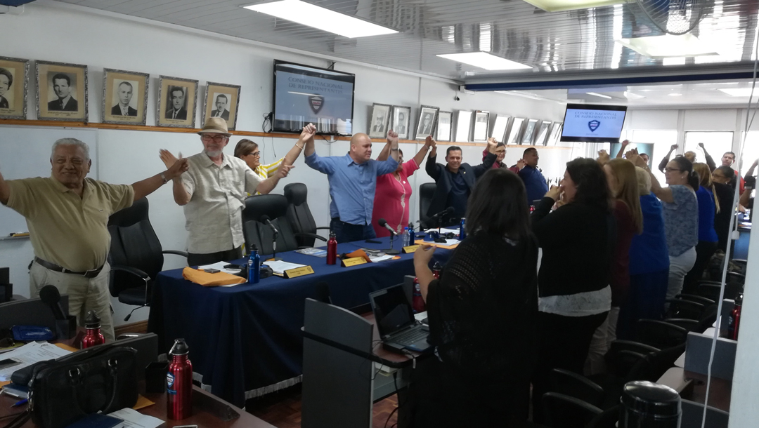 El pasado 23 de marzo, Maikol Hernández, secretario general de la Federación Nacional de Trabajadores de la Agroindustria Gastronomía, Hotelería y Afines (FENTRAGH) y del Sindicato Industrial de Trabajadores Costarricenses del Banano y Afines (SINTRACOBAL), afiliados a la UITA, expuso ante el Directorio Nacional de la Asociación de Educadores y Educadoras (ANDE) la grave situación que viven trabajadoras y trabajadores de Chiquita Brands Costa Rica, tras ser despedidos de forma abrupta, discriminatoria e ilegal por la transnacional de capital brasileño.