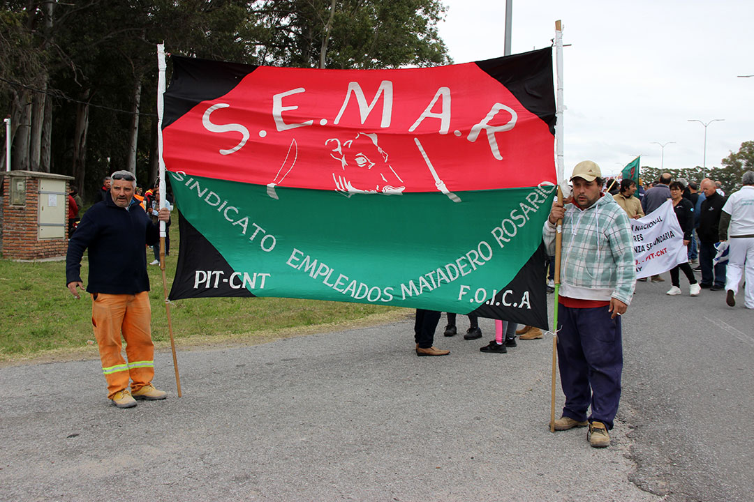 Este jueves 19, el Sindicato de Empleados de Matadero Rosario (SEMAR), organizó una volanteada en la ruta 1, principal acceso al departamento de Colonia, para volver a reclamar la reapertura del frigorífico Rondatel, paralizado desde julio.