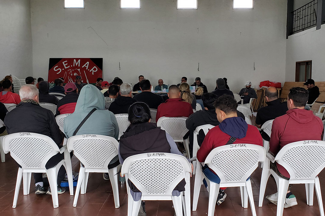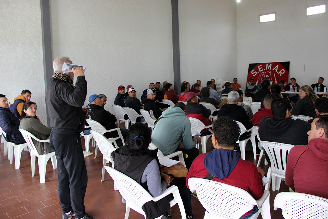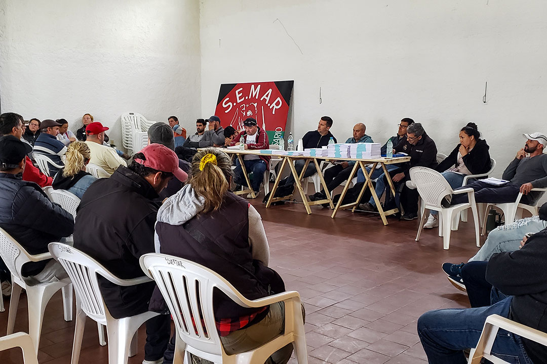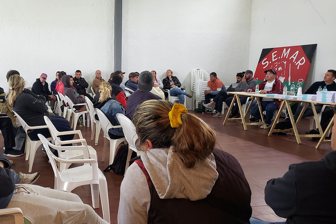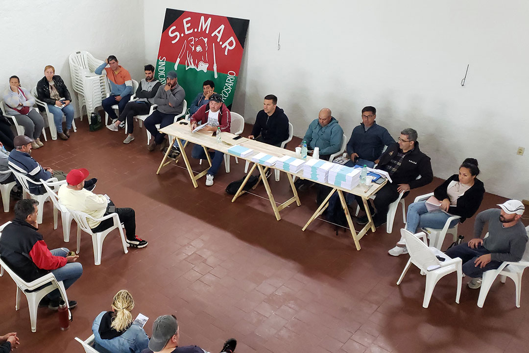 Este jueves 19, nuestra afiliada la Federación de Obreros de la Industria de la Carne y Afines (FOICA) convocó a un plenario extraordinario en la ciudad de Rosario (140 km. de Montevideo), en respaldo a las acciones del sindicato local, que exige del gobierno respuestas ante la incertidumbre laboral en el frigorífico Rosario y en el frigorífico Lorsinal, ambos del grupo chino Sundiro Holding.
