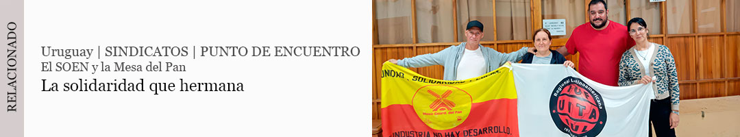 Este miércoles 22, aprovechando un viaje al litoral norte, dirigentes de la Mesa Coordinadora del Pan se reunieron con representantes del Sindicato de Obreros Y Empleados de Norteña (SOEN) y con el referente de la Rel UITA en Paysandú, José Oxley. El objetivo del encuentro fue poner en marcha una coordinación entre las organizaciones sindicales afiliadas a la Internacional en Uruguay.
